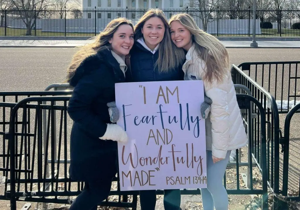 “On the day of the march, my roommates and I woke up early and made a sign to carry at the march. We then traveled as a group to the National Mall, where nearly 200,000 people gathered in honor of our cause. Over the next two hours, we listened to an amazing panel of speakers, including Senators, Congressmen/women, and (my personal favorite) Fr. Mike Schmitz. Since Roe vs. Wade is again being considered in the Supreme Court, the energy in the crowd was electric! After the conclusion of the speakers, we marched around the mall and up Capital hill, proudly carrying our signs. It was incredible to be surrounded by so many people from around the country, all marching for the dignity of life for all. As we quoted on our sign, “I am fearfully and wonderfully made” Psalm 139:14. It was an honor to stand up for the defenseless, and a privilege to stand in the presence of so many amazing people.”