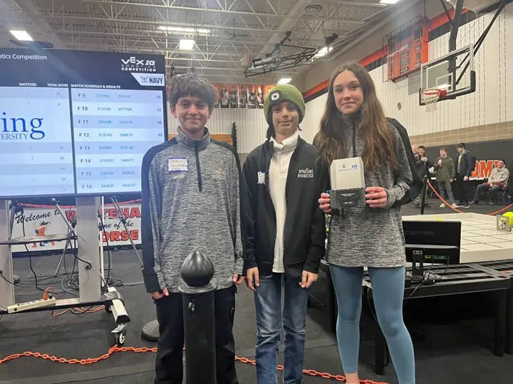 The Spartan team Code Crushers, featuring Siddharth Ganesh, Gray Randall, and Serena Mincoff, finished 2nd overall in the Teamwork Challenge and also earned the Design Award for the best documentation of their robotic design process. The Spartan middle school team Black Market Beans, consisting of Landry Scott, Lohith Kommu, and Miles Turner, placed 4th in the Skills Competition, earning an invitation to the state tournament in March. Not far behind, in 7th place, was the elementary team Gear Shift, made up of Lucy Peterson, Elise Labonte, Vivian McRaif, and Vera Helgeson, who also qualified for the state tournament.