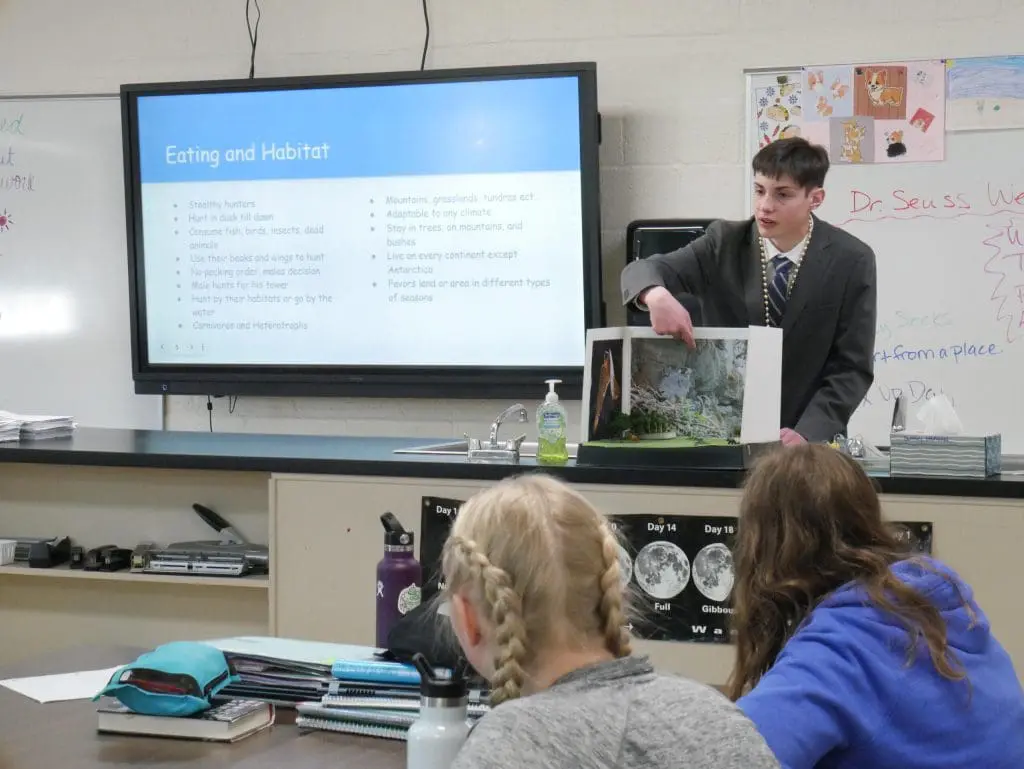 For nearly two months our 7th and 8th-grade students have been preparing for the biggest project of the school year: The Bird and Mammal Presentations. Each student is asked to complete a 10–12-page research paper, a diorama on their chosen subject, and a 10-15 minute presentation including the creation of google slides for that presentation. 7th-grade students were able to choose a mammal to research while 8th-grade students were able to choose a bird to research.